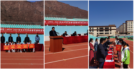 仪式上,校党委委员、副校长王磊同志宣读了获奖学生名单,校领导分别为格列、索南巴宗、罗布多吉、斯塔拉姆、多吉旺堆五位同学进行颁奖。颁奖后,获奖学生代表斯塔拉姆同学做发言,感恩党和国家为边疆学子成长成才而实施的各项举措,并对自身的学习经验做了全面的分享。随后,校党委书记、副校长余向辉同志作重要讲话,希望获得奖励的同学,牢记党和国家的嘱托,不负广大师生的殷切希望,谦虚谨慎,从零做起,坚定信念,执着追求,努力成为国家需要、社会满意的优秀人才;希望全校广大青年学生,以今天受表彰的优秀学生为榜样,学先进赶先进;要求学校各职能部门要进一步增强使命感和责任感,切实将国家的各项资助奖励政策宣传到位、落到实处,充分发挥资助“育人”功能,促进学生全面成长。